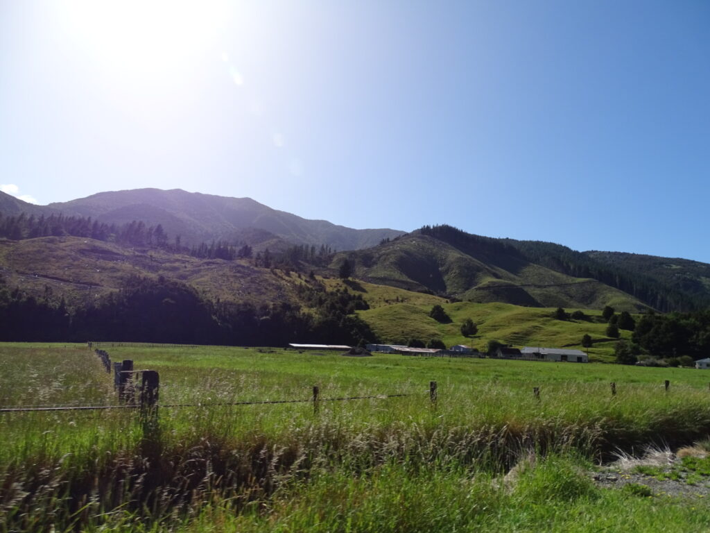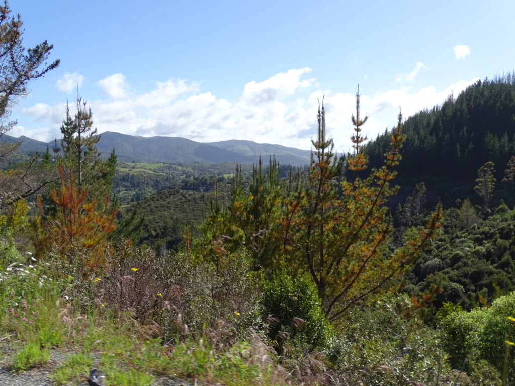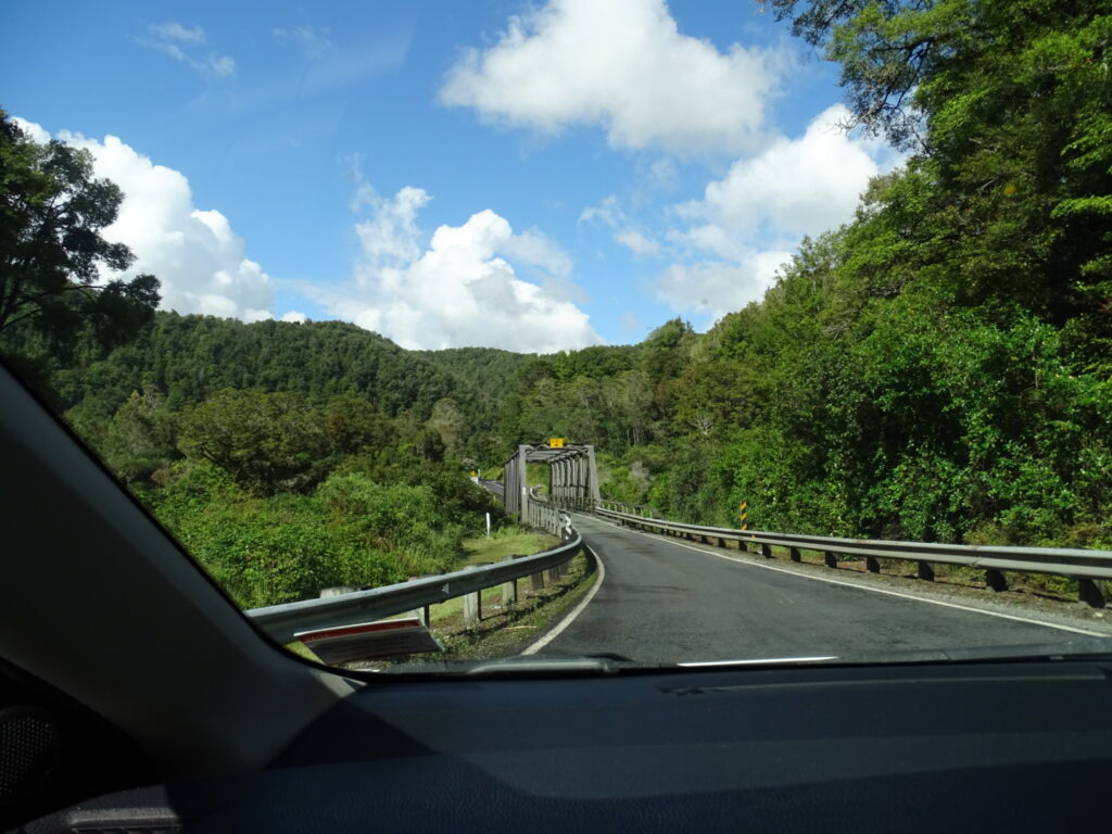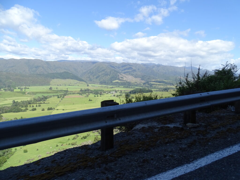 We beginnen in Takaka, nog even naar de supermarkt voor brood morgenochtend en wat lekkers voor de lunch. Dus word al een paar minuten later. We verheugen ons op de rit over Takaka Hill. Zonnetje schijnt, helder zicht. We kunnen genieten van alle diepe ver gezichten.