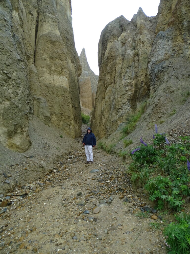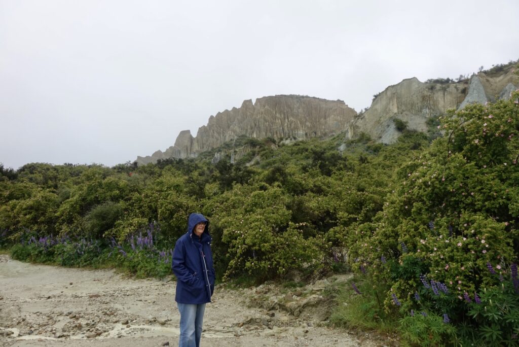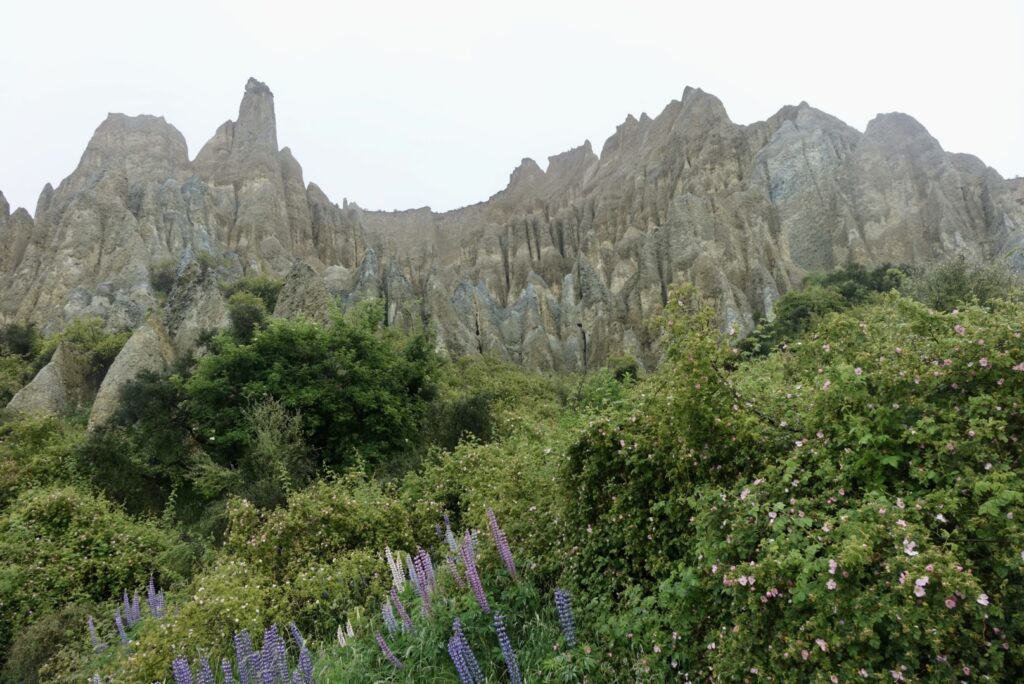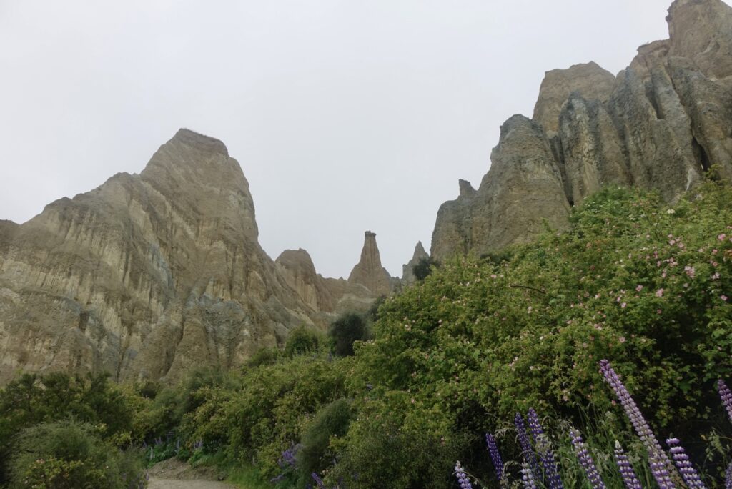 Vandaag zijn we dus wat anders gaan doen. Met een regenachtige start van de dag zijn we eerst richting Omarama gereden voor een bezoekje aan de beroemde Clay Cliffs. Had gelezen dat het daar best wel wat druk kon zijn maar wij waren vroeg op pad dus dat viel voor ons weer mee. Op de terugweg over een paar kilometers gravelweg kwamen we de meute tegen. Wij hadden mazzel dus, lekker rustig.