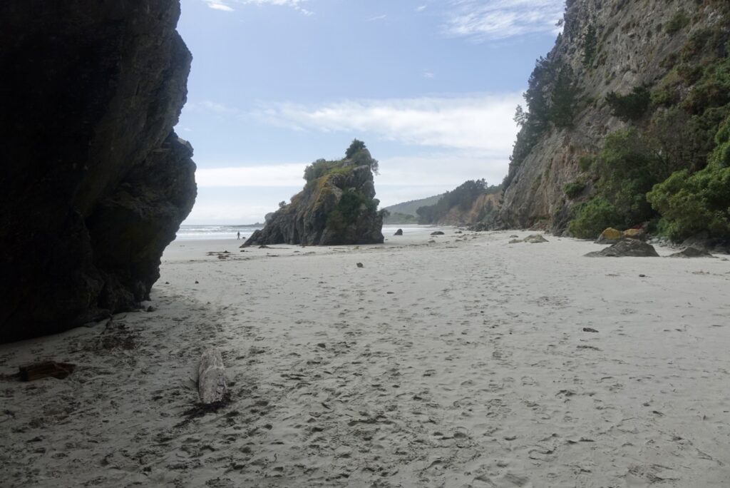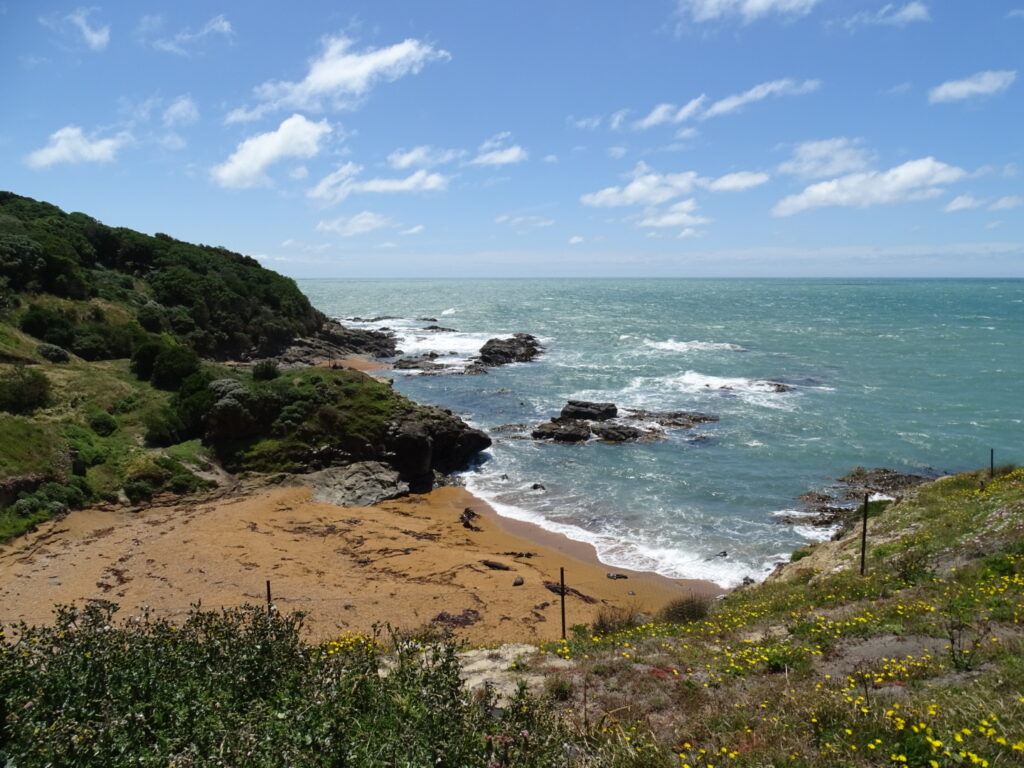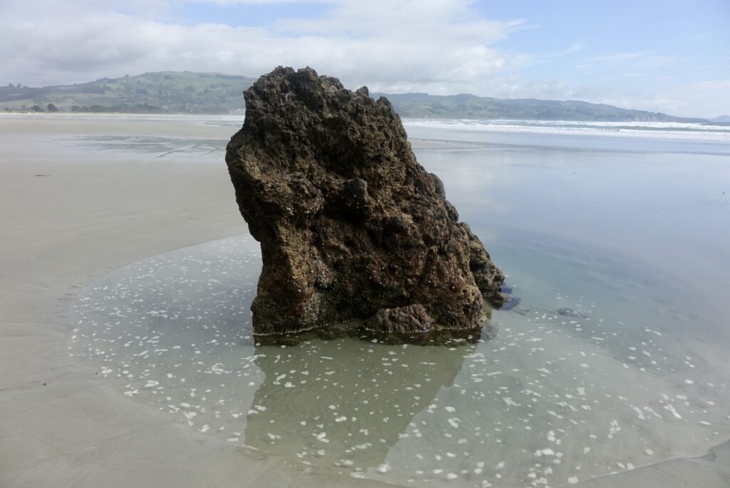 Was vandaag weer een vroegertje. Dit vanwege een strandwandeling bij Doctor’s Point dat alleen bereikbaar is bij laag water. Is niet ver van Dunedin af en lijkt op Cathedral Cove die we eerder door slecht weer niet konden bezoeken. Een beetje uitwaaien over het strand met aan de ene kant een blauwe lucht en aan de kant achter ons weer de ons bekende donkergrijze wolken. Gelukkig bleef het droog.