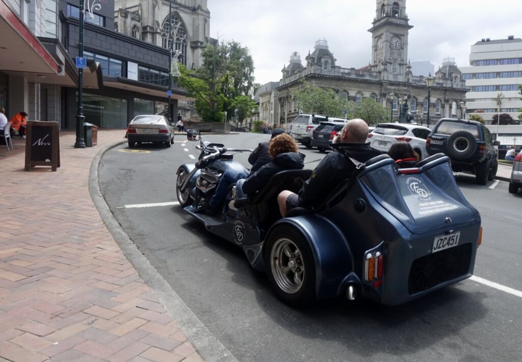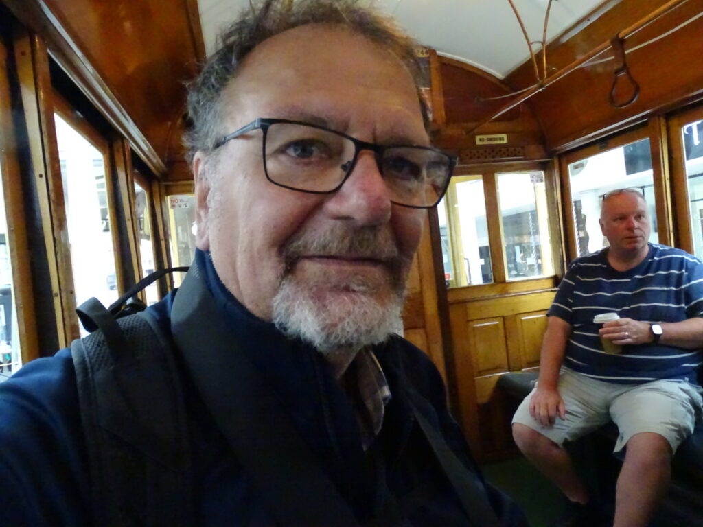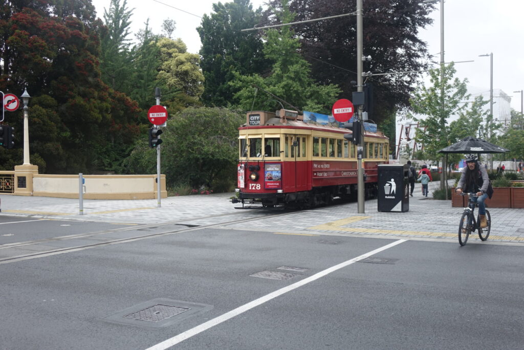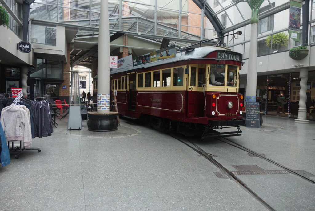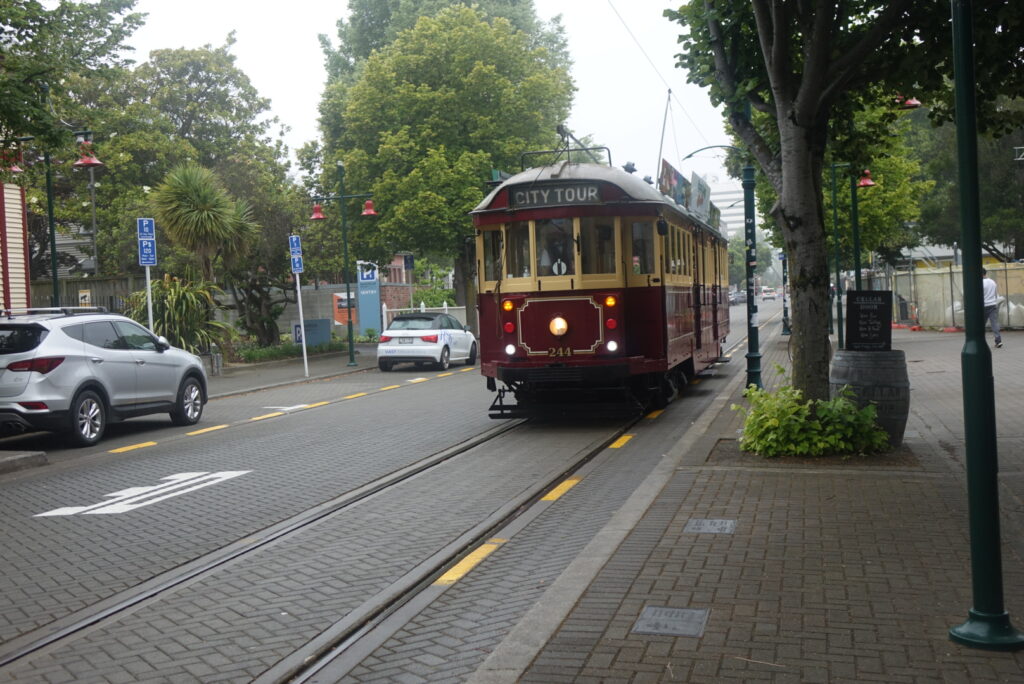 Eerst een kaartje gekocht voor de Historische Hop on Hop off Tram die door de binnenstad van Christchurch rijdt en op 18 interessante plekken stopt.