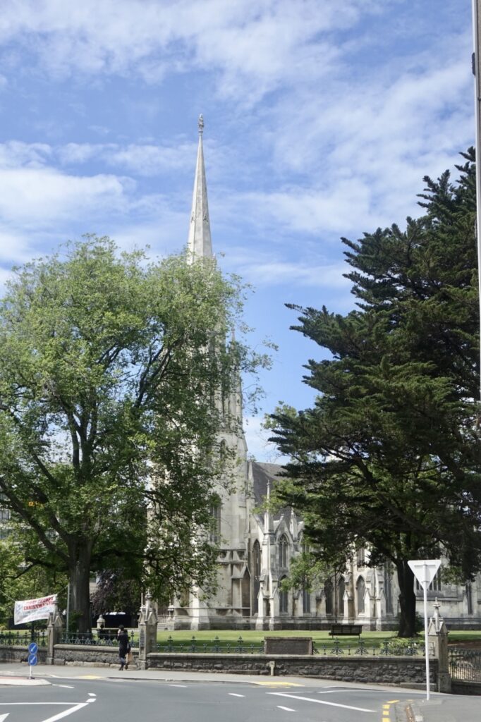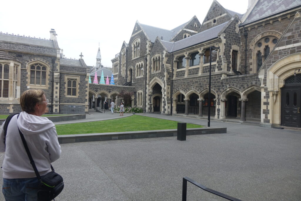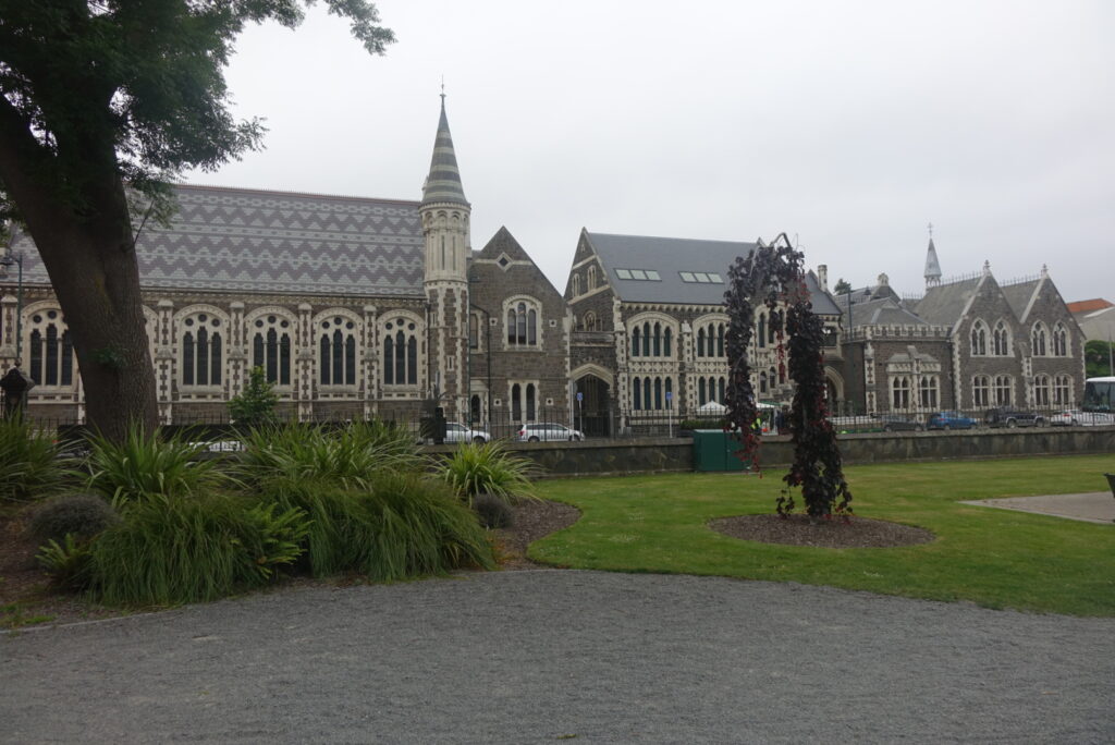 Maar terug naar onze reisbelevenissen. Vandaag geen lange autorit. Onze niet meer helemaal witte Toyota bleef gewoon geparkeerd staan bij ons motel. Te voet naar het centrum van Christchurch was maar een kwartiertje lopen. Er was wel wat regen voorspeld maar volgens het weerkaartje zou het droog blijven.