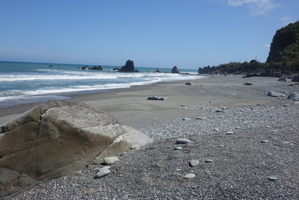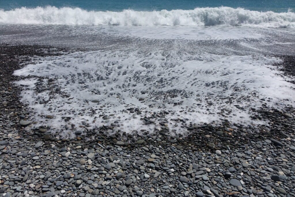 Ook nog even gestopt bij een verlaten strandje met allemaal kiezelstenen.