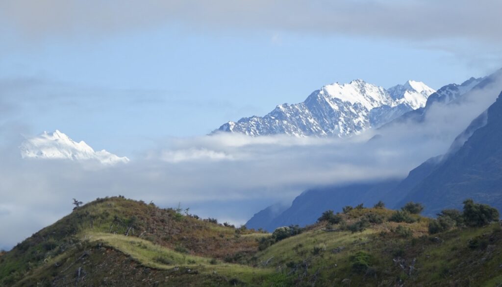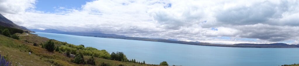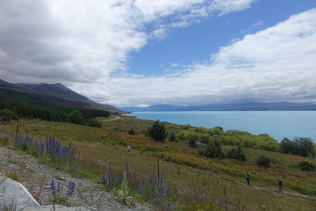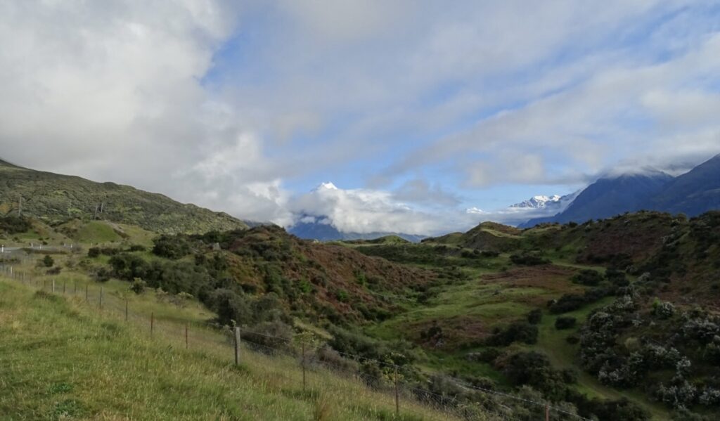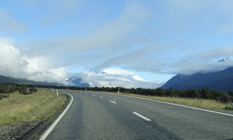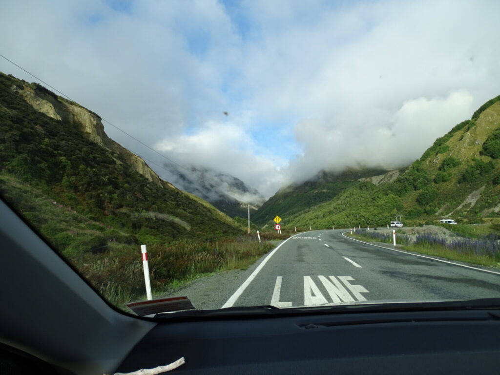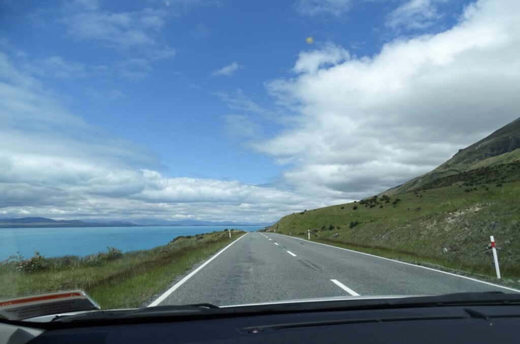 Wij hadden geluk dat we dit konden zien op de heen weg, maar al snel verdwenen ze achter de bewolking. De rit naar Oamaru was ook niet verkeerd. Beginnend bij Highway 80 langs Pukaki meer.