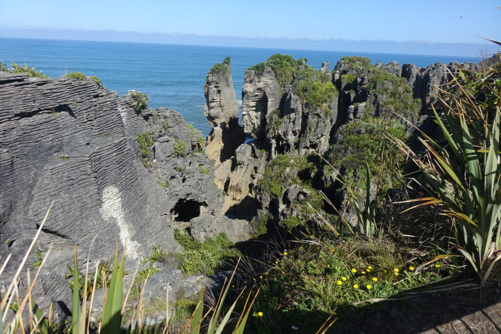 Verder dan maar naar de beroemde Pancake Rocks. Hebben we eerder ook bekeken maar met beter weer is het daar nog mooier.