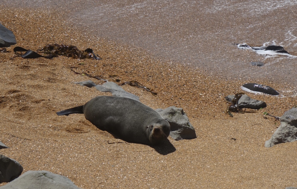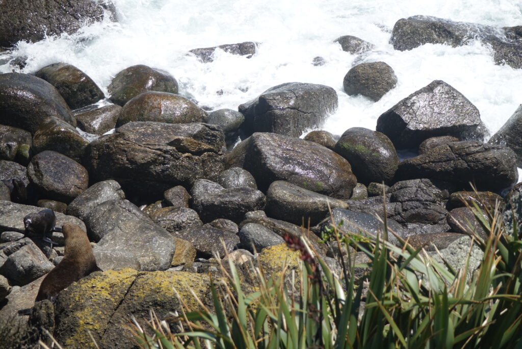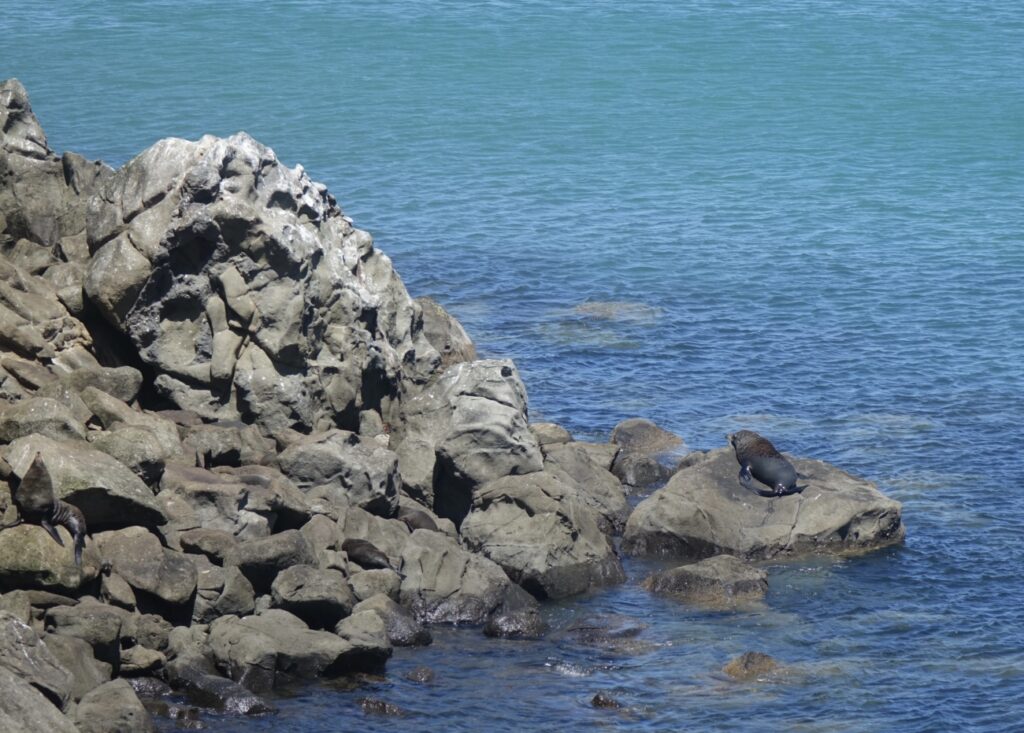 Door naar Cape Foulwind. Het weer is intussen verrukkelijk, zonnetje schijnt volop en is lekker warm geworden. Heerlijk genoten daar van het uitzicht en natuurlijk de zeehonden al waren die wat lastig te spotten