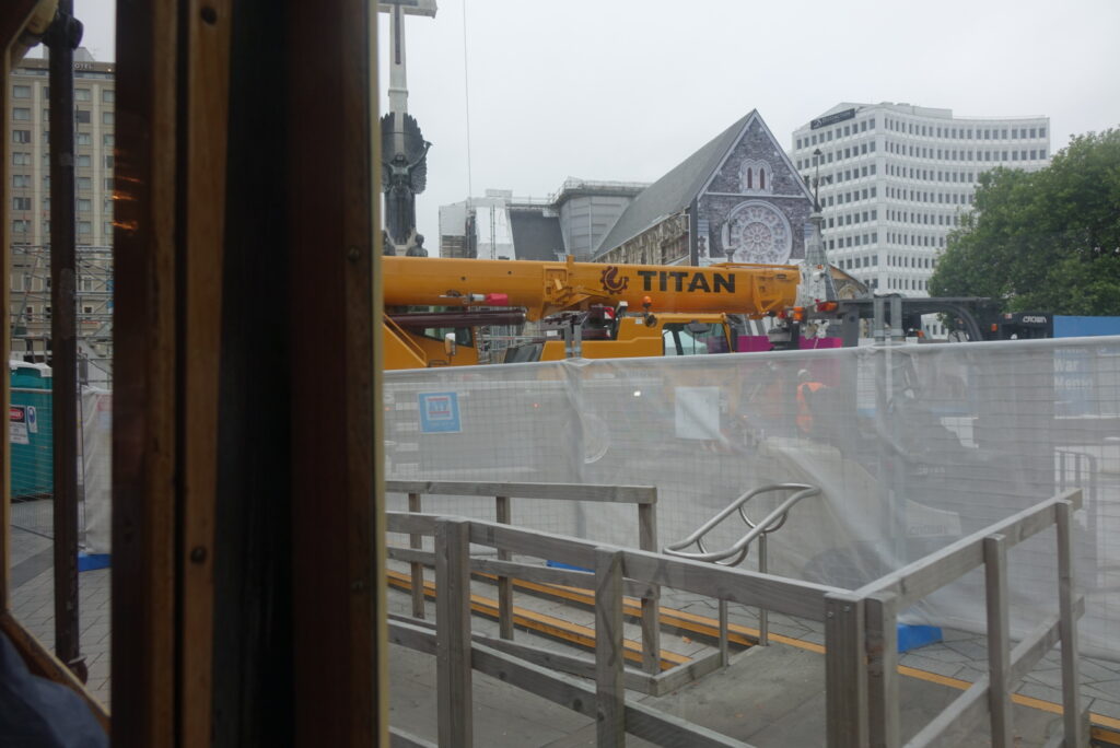 Op heel veel plaatsen is duidelijk te zien dat ze de aardbevingen van 2010 en 2011 nog lang niet te boven zijn. Veel gebouwen zijn nog met hekken afgeschermd en de trambestuurder vertelde dat sommige pas in 2035 en later hersteld gaan worden.
